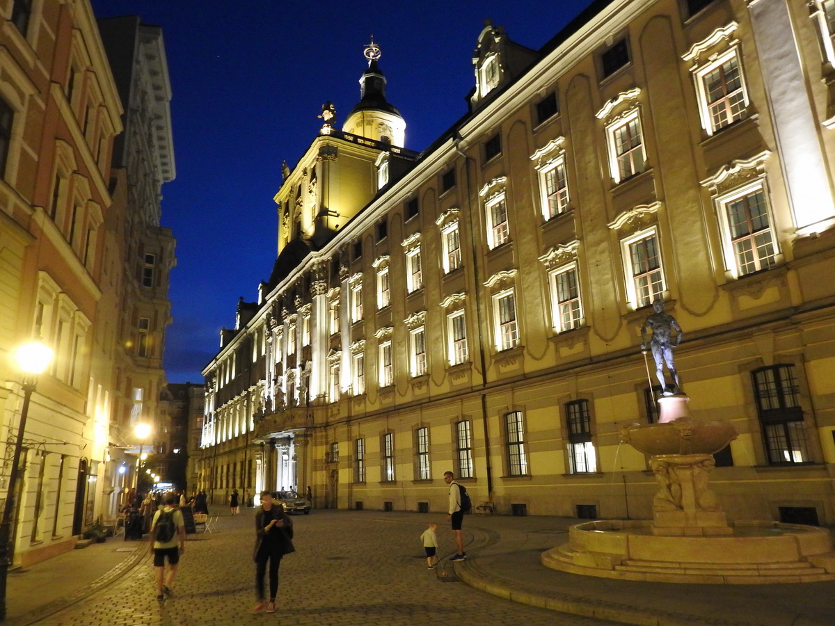 piêknie pod¶wietlonych budynków starego miasta: Ossolineum i